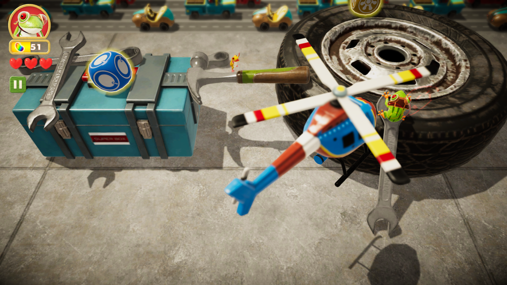 Apple Arcade Frogger in Toy Town is a classic frog-action game returns on Apple Arcade with an all-new look and the same simple gameplay. Frogger In Toy Town is a jumping and running game that updates the classic Frogger road-crossing challenge.